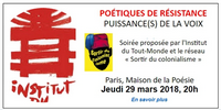 « Poétiques de résistance » jeudi 29 mars 2018 20h, Paris Maison de la Poésie