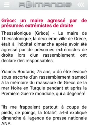 Pluie brève et fine sur Athènes dimanche soir, nos touristes n’apprécient pas vraiment il faut dire. Le pauvre maire de Thessalonique a quitté l’hôpital, dimanche soir, fort heureusement rien de bien grave tandis que deux hommes sont en état d’arrestation en rapport avec l’agression. Dans la presse, tout le monde condamne cet acte, dans la rue… c’est alors plus délicat. (...)