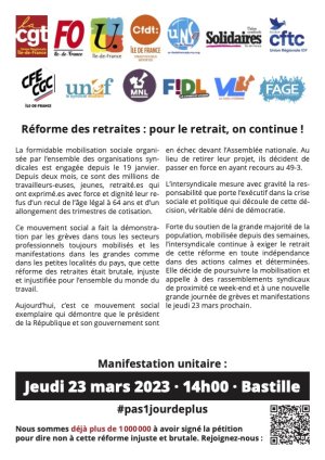 Si ce constat est nécessaire pour avancer, il convient de redire aussi le caractère puissant de ce mouvement de masse. Sans revenir sur les énormes manifestations dans l’ensemble des territoires, il faut noter les blocages, les rassemblements, qui perdurent depuis le 7 mars. (...)