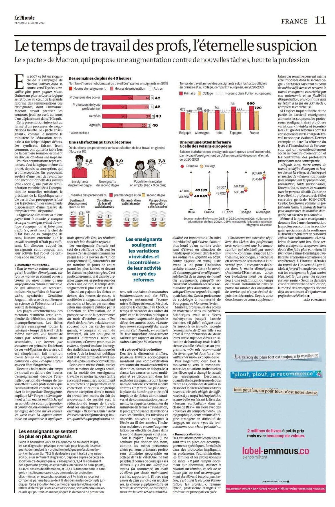 « L’enseignement est un métier multitâche qui va au-delà des cours, préparation et correction, où le temps de travail est diffus, déborde sur les soirées, les week-ends. La logique comptable est impossible à appliquer, mais quand elle l’est, les résultats sont très loin des idées reçues. » (...)