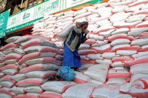 Un travailleur yéménite transporte un sac de farine à l’extérieur d’un magasin de gros dans la capitale Sanaa, le 27 mars. Le Yémen est en proie à l’une des pires crises alimentaires au monde. Ce pays est presque entièrement dépendant des importations. 30% de son blé provient d’Ukraine. La guerre est donc susceptible d’entraîner des chocs importants au niveau des importations, faisant encore grimper les prix des denrées alimentaires. Or, déjà 2,2 millions d’enfants yéménites souffrent de malnutrition aiguë.