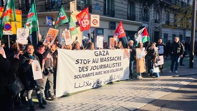 La branche française de la Fédération internationale des journalistes avait appelé à manifester dimanche 17 décembre à Paris, déclarant qu’il était " plus qu’urgent d’assurer une protection effective pour tous les journalistes dans la bande de Gaza, mais aussi en Cisjordanie et à la frontière avec le Liban, ainsi que leur liberté de circulation." (...)