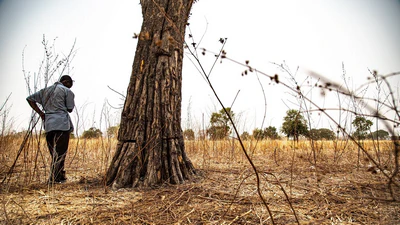 Il s’arrête devant des traces de charrette encore fraîches. « Les arbres ont été abattus ici hier soir. On voit encore la sève rouge sang qui coule, d’où le nom de bois de rose, explique le militant écologiste. Les trafiquants emporteront les souches plus loin ce soir. » La forêt, autrefois connue pour sa diversité et sa faune riche, ressemble aujourd’hui à une savane sèche.