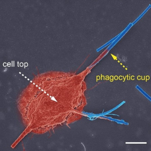 La raison ? L’incapacité des macrophages2 naturellement présents sur le tissu des alvéoles pulmonaires à assimiler des corps étrangers de trop grosse taille. Cette étude a été réalisée dans un premier temps in vitro, avec des nanocapteurs électrochimiques. Elle a permis d’observer que, lorsque confrontées à des nanofibres inertes dont la longueur excède 15 microns3 , ces cellules ne réussissent pas à se distendre suffisamment pour totalement les encapsuler à l’intérieur de leur vésicule « digestive ». Cela engendre des fuites de sécrétions très nocives pour la paroi alvéolaire, que cette étude a permis de détecter, caractériser et quantifier pour la première fois (...)