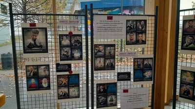 La section SUD éducation - université Paris Nanterre a conçu, à partir de clichés publiés par Médiapart, une exposition intitulée “Témoins de trop”, en hommage aux journalistes palestinien·e·s tué·e·s dans la bande de Gaza ces deux dernières années.