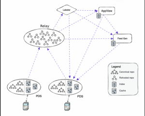 Sur les relais en revanche, tout change. Leur mission est de parcourir tous les PDS, d’agréger et indexer le contenu pour en produire un énorme flux unique de données en streaming, souvent appelé firehose dans le jargon. Ce flux est ensuite mis à disposition de tout l’écosystème atproto (protocole AT). Les relais agissent comme un moteur de recherche. (...)