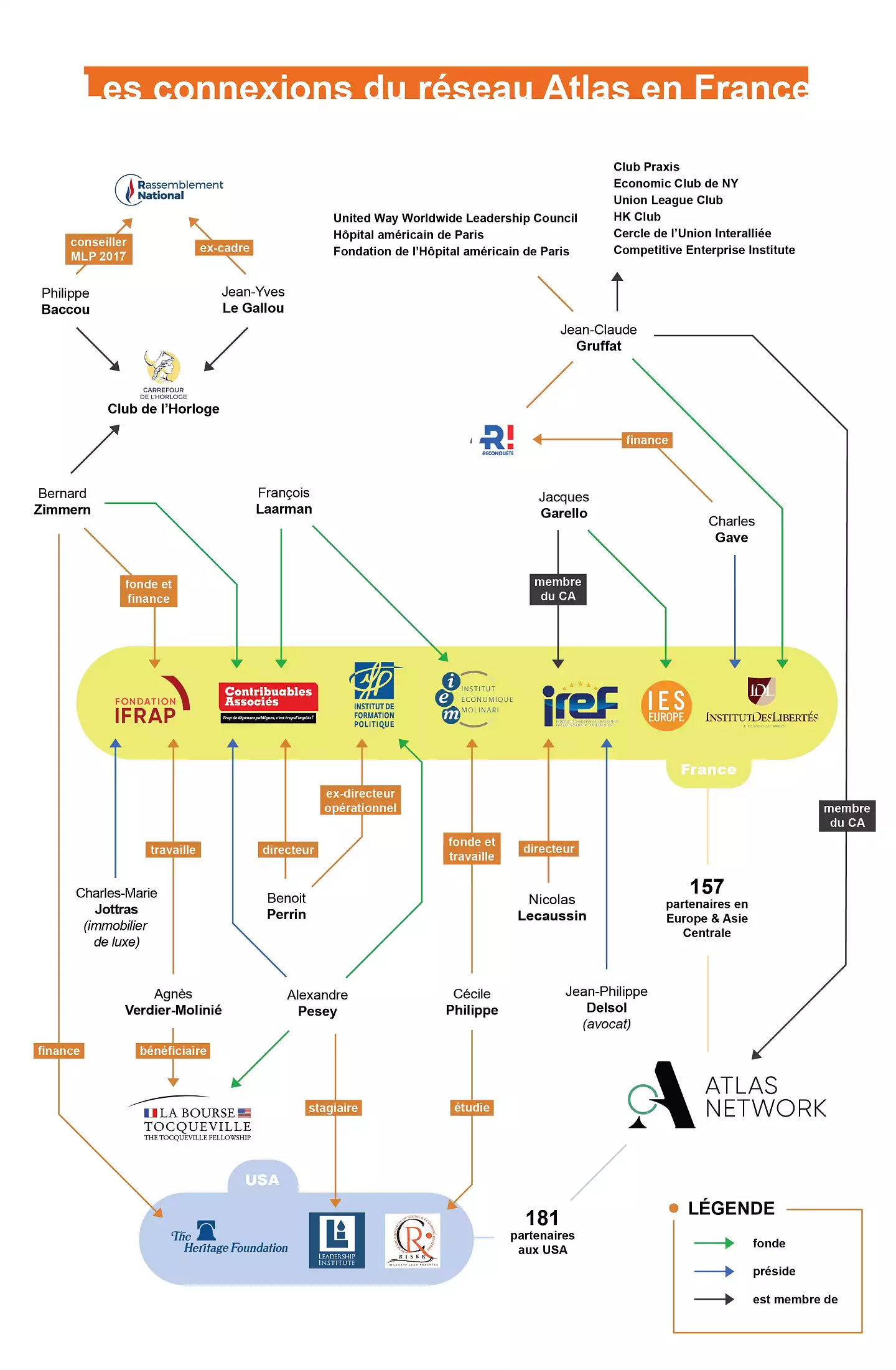 C’est surtout depuis les années 2010 que les partenaires français du réseau Atlas ont pris de l’importance, notamment à travers leur visibilité dans les médias. Ils ont tous des liens avec le monde des affaires, mais aussi, dans bien des cas, avec la sphère politique, en particulier avec l’extrême-droite et la droite radicale. Ils ont bénéficié de formations et d’autres formes de soutien du réseau états-unien, pour leur bataille culturelle. (...)