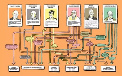Depuis 2022, Inès Léraud et Kristen Falc’hon regardent sous les caillebotis de la filière porcine bretonne. Cette fois, nous publions, en partenariat avec La Revue Dessinée, quatre organigrammes pour donner à voir le lobby du cochon, de la Bretagne jusqu’à l’Élysée