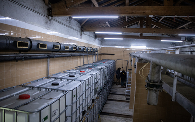 Inaugurée en novembre, l’usine tourne encore au ralenti. Mais à l’intérieur du local, plusieurs cuves sont déjà remplies de liquide doré. « Ici, on laisse l’urine pendant un à six mois, pour qu’elle s’hygiénise : les pathogènes éventuellement présents sont tués par la réaction chimique qui se produit naturellement », indique l’ingénieure.