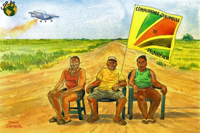 En une petite quinzaine d’années, tout leur mode de vie — basé sur des traditions ancestrales — a été fragilisé. Quand ces communautés ne sont pas empêchées par des hommes armés d’accéder aux cours d’eau, les pesticides prennent le relais. Répandus sur les champs par avion ou par drone, ces produits chimiques s’infiltrent jusqu’à atteindre les rivières… empêchant dès lors les quilombolas de pêcher ou cueillir les baies d’açaï, constituant la base de leur alimentation. (...)