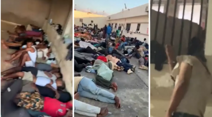Ce sont deux vidéos qui ont été publiées par l’organisation d’aide aux réfugiés Refugees in Libya. Sur la première, publiée le 1er septembre, des dizaines de personnes sont entassées à même le sol, pieds nus et sans matelas ou couverture, dans le silence. Selon Refugees in Libya, ils étaient alors plus de 900 à être retenus au même endroit. Sur les images, on peut en compter au moins cent.