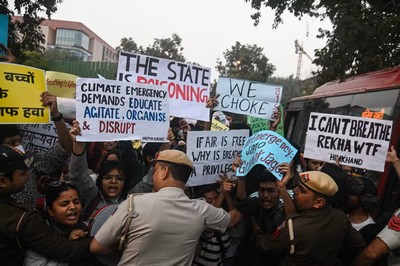 Au moins 400 personnes s’étaient rassemblées dimanche 9 novembre pour protester, masquées et brandissant des banderoles, contre l’aggravation de la pollution atmosphérique à Delhi, selon The Indian Express. Parmi les manifestants se trouvaient des enfants et des personnes âgées.
