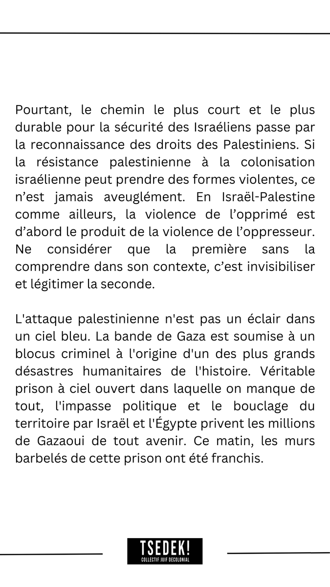 Plusieurs milliers de roquettes ont été tirées sur Israël samedi matin, et des combattants du Hamas ont pénétré sur le territoire. Ils étaient encore « des centaines » dans la soirée. L’État hébreu a engagé ses troupes en réponse. Les bilans provisoires font état d’au moins 250 morts israéliens et 200 victimes palestiniennes. Le Hamas détient des otages israéliens.