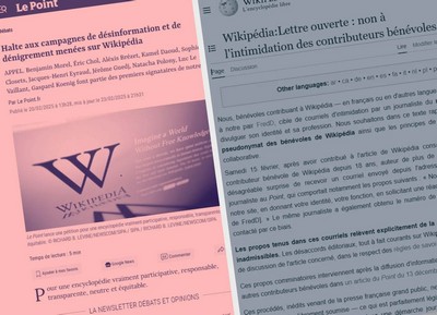 Ce conflit étonne doublement la chercheuse. L’article consacré au Point est considéré par la communauté wikipédienne comme « bien construit », même s’il peut être perfectionné. D’autre part, la couverture journalistique accordée à la plateforme pour ses vingt ans en 2021 semblait indiquer que son fonctionnement faisait désormais largement consensus au sein de l’univers médiatique. (...)