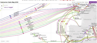 Commençons par cette vidéo d’accroche extraite du Journal de 20h diffusée par la chaîne de télévision France 2 le 5 juillet 2016. Elle rappelle que les câbles sous-marins assurent 99% des flux mondiaux d’information et que la compétition entre les pays est acharnée, la France étant bien placée dans ce domaine. Il s’agit d’installer chaque année des milliers de kilomètres de câbles en fibre optique qui constituent désormais les véritables artères de l’Internet mondial. (...)
