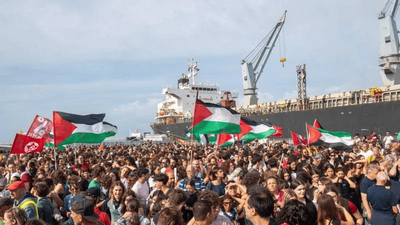 Dans le cadre de l’appel à la grève générale en Italie en soutien à la Palestine et à la flottille humanitaire pour Gaza, les dockers de Livourne, soutenus par des centaines de personnes, ont bloqué leur port pendant plusieurs jours, et ont réussi à empêcher l’arrivée d’un cargo militaire étatsunien.