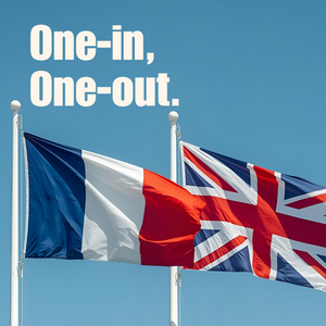 Le 10 juillet 2025, à Londres, lors du 37ᵉ sommet franco-britannique, Emmanuel Macron et Keir Starmer ont annoncé un dispositif rebaptisé par la presse britannique « one in, one out », ce qui signifie littéralement « un qui entre, un qui sort ».