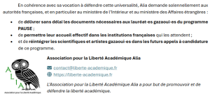 Communiqué de presse de l’Association pour la Liberté Académique (Alia) Le 1er février 2026