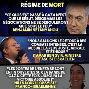 Itamar Ben Gvir, ancien Ministre d’extrême droite, est de retour dans le gouvernement israélien. Il l’avait quitté en janvier car il était mécontent de la trêve à Gaza. Cette fois-ci, il félicite la reprise du carnage. (...)