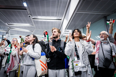 Il y avait peu de monde à l’aéroport d’Orly ce mardi 7 octobre, une petite centaine de personnes, pour accueillir la délégation française de la flottille. Ce calme tranche, là encore, avec l’accueil reçu à Athènes. « L’aéroport Héraklion était plein, la population était là », raconte, émue, Théo, présente à Paris, mais de nationalité grecque. Comment explique-t-elle la faible mobilisation en France ? Elle montre les policiers à Orly qui filtrent l’accès au hall d’aéroport. « Et ils ont fait exprès de diviser le groupe dans plusieurs avions. Même les manifestations en soutien ont été réprimées, comme à Toulouse. » (...)