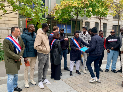 Rendez-vous était donné devant le métro Cité, au cœur de la capitale, mercredi 15 octobre après-midi. Assis sur un banc, une dizaine de travailleurs sans papiers originaires du Mali, du Sénégal ou de Gambie attendent l’arrivée de quatre député·es, aux côtés de Lena et Alex, membres du collectif des Gilets noirs.