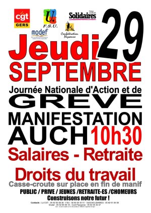 toutes et tous en grève le 29 septembre pour des hausses de salaires. Mobilisation générale