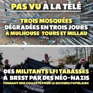 Samedi 30 août à Brest, des militants de la France Insoumise participent à une collecte de fournitures scolaires en faveur du Secours populaire, juste avant la rentrée. Des individus cagoulés débarquent et agressent le groupe de quatre personnes : « Deux d’entre eux, mis à terre, ont été à de multiples reprises frappés, notamment au visage. Pour l’un d’eux, cela fait suite à des menaces de mort » rapporte la presse. (...)