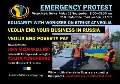 L’Ukraine Solidarity Campaign, qui compte sur une base syndicale importante, a mis en avant que Veolia, qui continue à négocier des opérations commerciales avec le régime russe, refuse d’entamer des négociations avec le syndicat GMB.