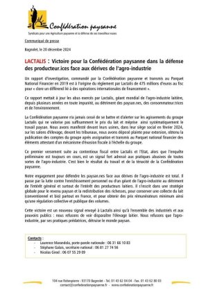 Ce rapport mettait à jour les abus exercés par Lactalis, géant mondial de l’agro-industrie laitière, depuis plusieurs années en toute impunité, au détriment des paysans, des consommateurs et de l’environnement. (...)